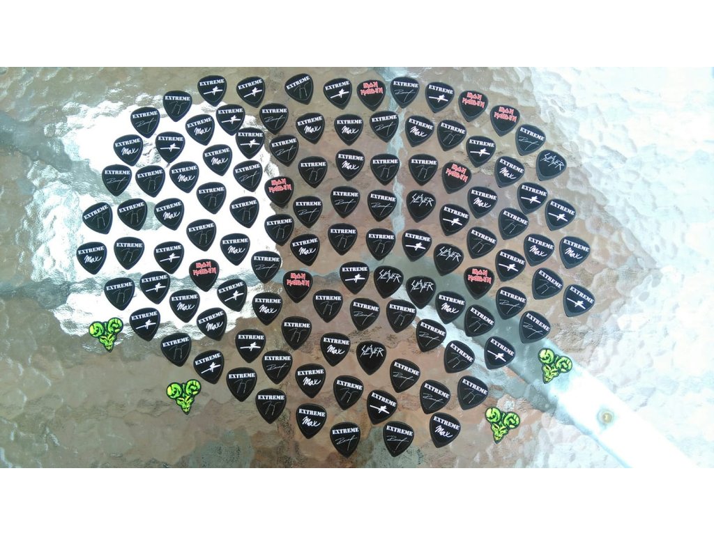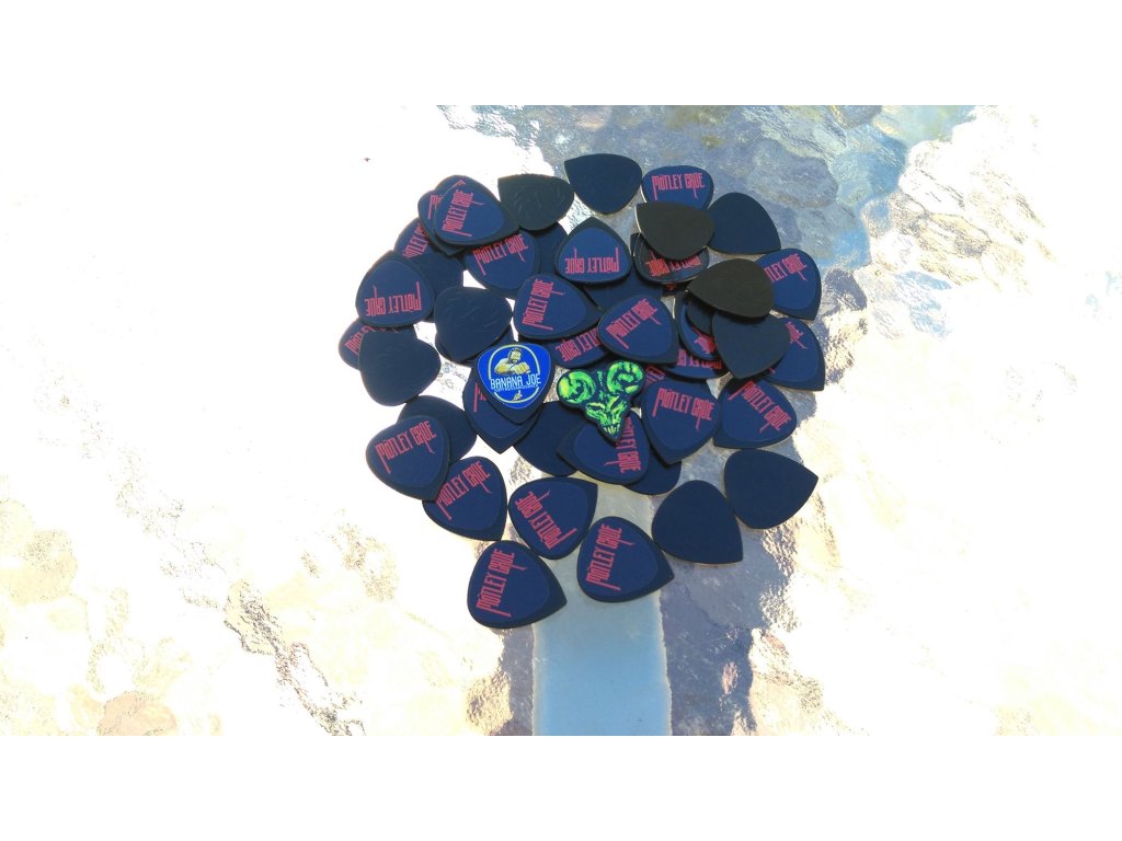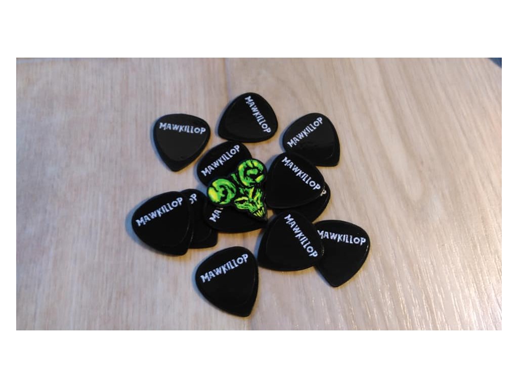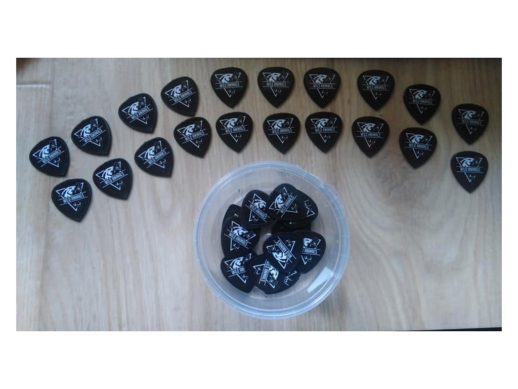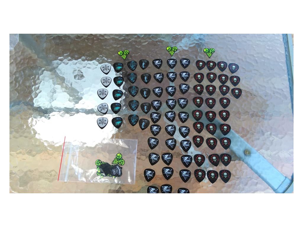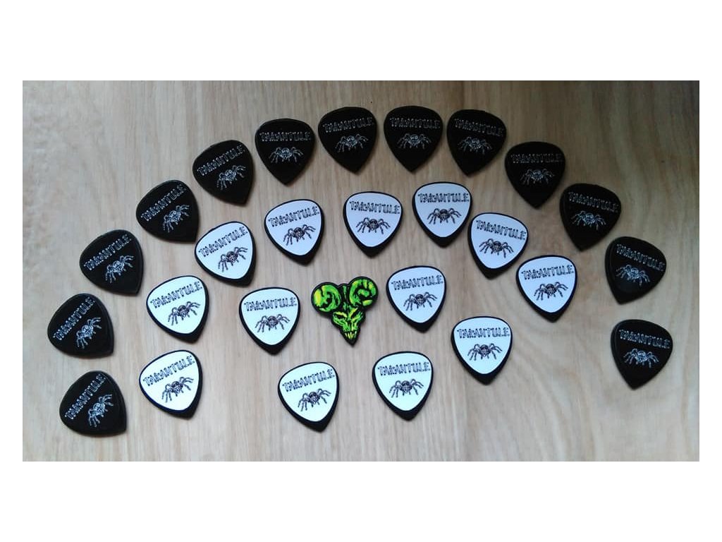 Obrázek na trsátka lepíme.Jedná se o polymerové samolepky s extrasilným lepidlem.Samolepky tiskneme ,stejně tak jako samolepky pro wraping kytar , v rozlišení 2400 dpi.To zaručuje, že i na tak malém trsátku vidíme i ty nejmenší detaily.Pro ochranu před vyblednutím od sluníčka a poškrábáním,či smazáním obrázku,se samolepka laminuje fólií bránící proniknutí UV záření k barvě.Tím se zaručí dlouhá životnost zářivých barev kterou garantujeme na 5 let :)